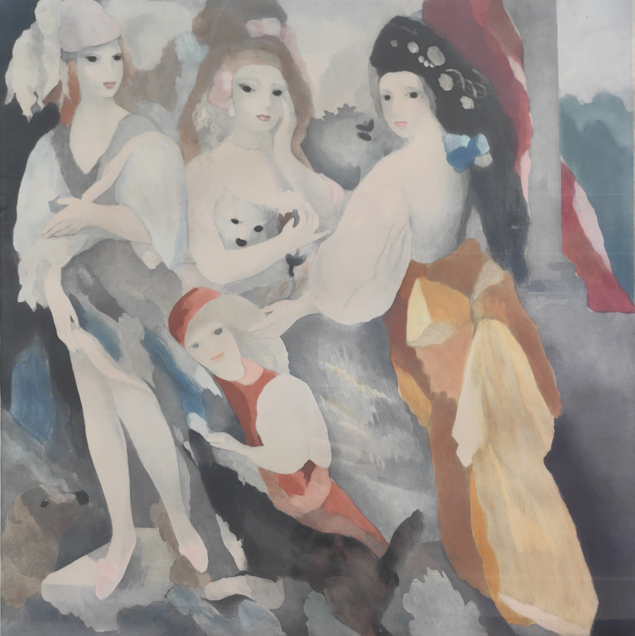 Marie Laurencin (1883-1956), French painter and printmaker. She was the first woman to paint in the Cubist style. Known for her paintings of ethereal female figures, she was close to Braque, Picasso, Matisse, and Appollinaire. In the early 20th century, she occupied a prominent place during a period when art exploded with genius. She lived in the Montmartre district of Paris and became part of the circle around the Steins. Although her early portraits show the imprint of the Fauves and Cubists, her romantic and delicate temperament defied these schools.
