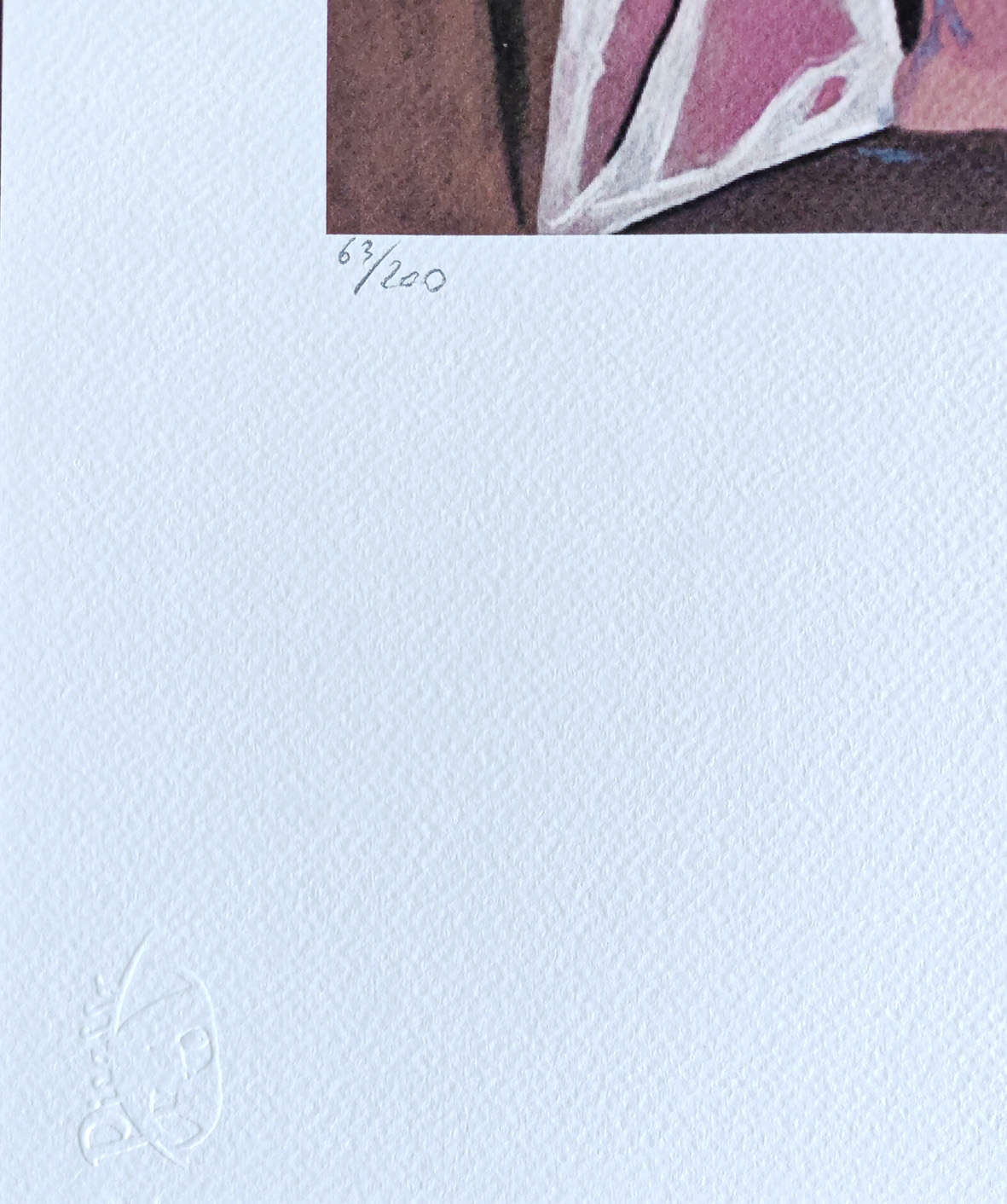 Napis ołówkiem l.d.: 63/200, p.d.: faksymile „Picasso”.