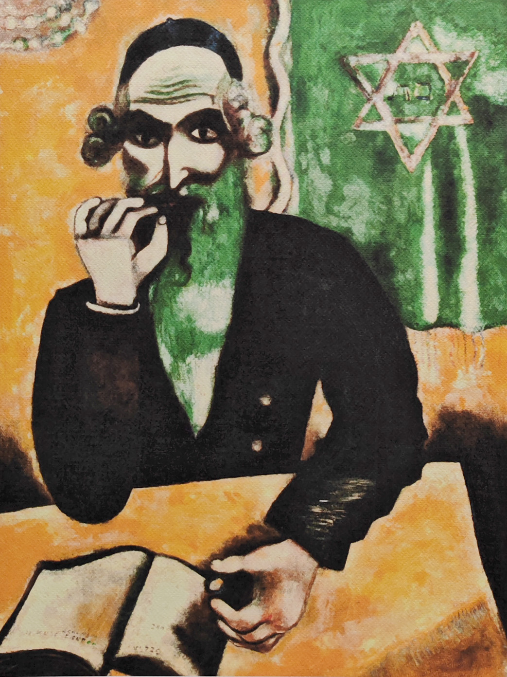 Marc Chagall (1887-1985) – francuski malarz i grafik pochodzenia rosyjskiego. Wybitny przedstawiciel École de Paris. Rysunku uczył się u witebskiego malarza Juda Pen. W 1907r. rozpoczął studia w Akademii petersburskiej .W latach 1910-1914 przebywał na stypendium w Paryżu, gdzie zetknął się z kubizmem i zaprzyjaźnił z G. Apollinairem i M. Jacobem. W 1915r. ożenił się z Bellą , była ona muzą wielu jego obrazów. W 1919r. był kierownikiem artystycznym Państwowego Teatru Żydowskiego w Moskwie. Od 1947r. mieszkał na stałe w Paryżu. Po naiwno-realistycznych obrazach w początkowej twórczości, uległ wpływom kubizmu, ekspresjonizmu i surrealizmu. W jego obrazach przeważa pogodna tematyka miłosna, pejzaże, sceny religijne. Charakterystycznymi dla niego środkami wyrazu są m.in. deformacja kształtów, zachwianie proporcji, przewaga żywych czerwieni, błękitów i zieleni.