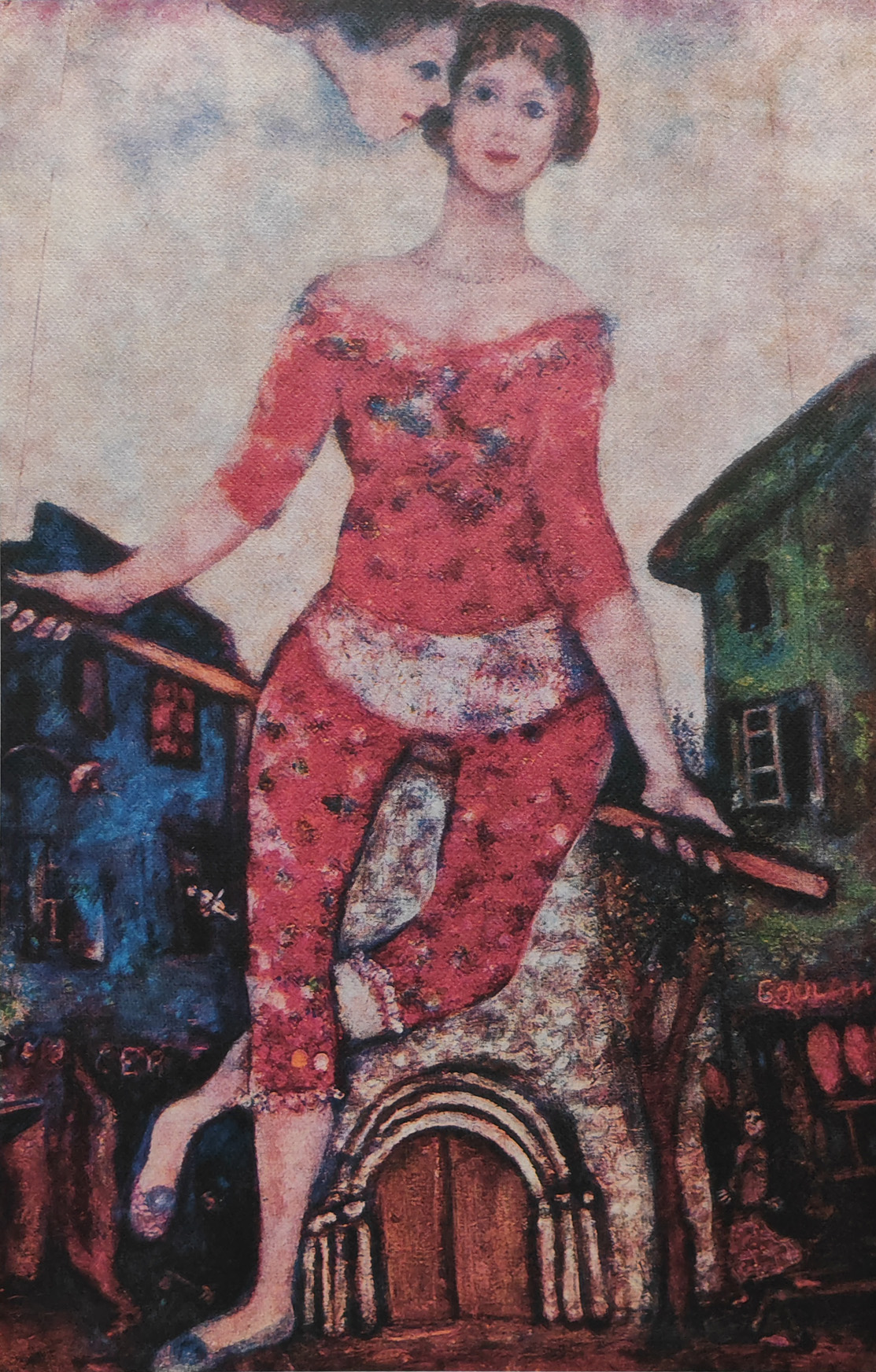 Marc Chagall (1887-1985) – francuski malarz i grafik pochodzenia rosyjskiego. Wybitny przedstawiciel École de Paris. Rysunku uczył się u witebskiego malarza Juda Pen. W 1907r. rozpoczął studia w Akademii petersburskiej .W latach 1910-1914 przebywał na stypendium w Paryżu, gdzie zetknął się z kubizmem i zaprzyjaźnił z G. Apollinairem i M. Jacobem. W 1915r. ożenił się z Bellą , była ona muzą wielu jego obrazów. W 1919r. był kierownikiem artystycznym Państwowego Teatru Żydowskiego w Moskwie. Od 1947r. mieszkał na stałe w Paryżu. Po naiwno-realistycznych obrazach w początkowej twórczości, uległ wpływom kubizmu, ekspresjonizmu i surrealizmu. W jego obrazach przeważa pogodna tematyka miłosna, pejzaże, sceny religijne. Charakterystycznymi dla niego środkami wyrazu są m.in. deformacja kształtów, zachwianie proporcji, przewaga żywych czerwieni, błękitów i zieleni.