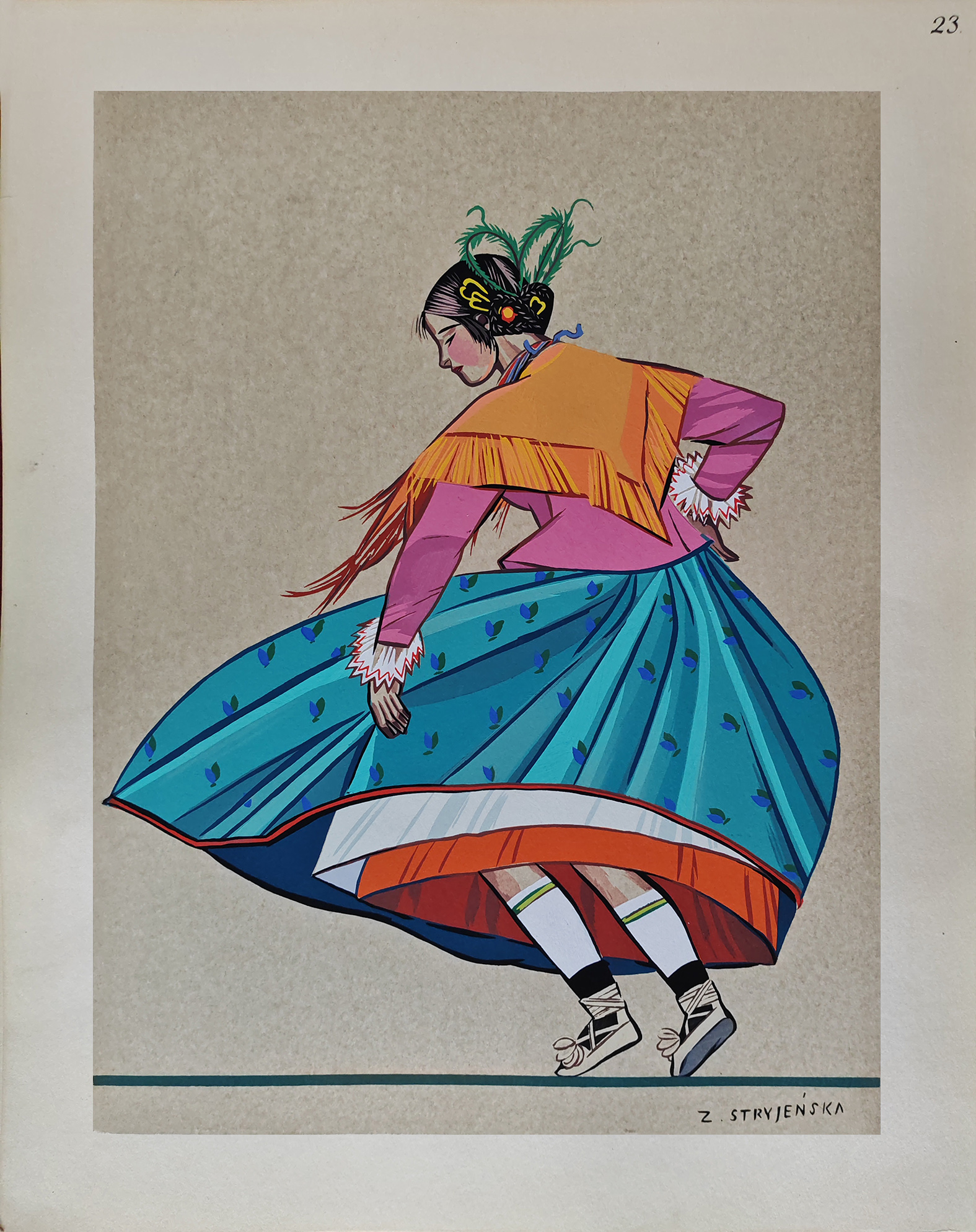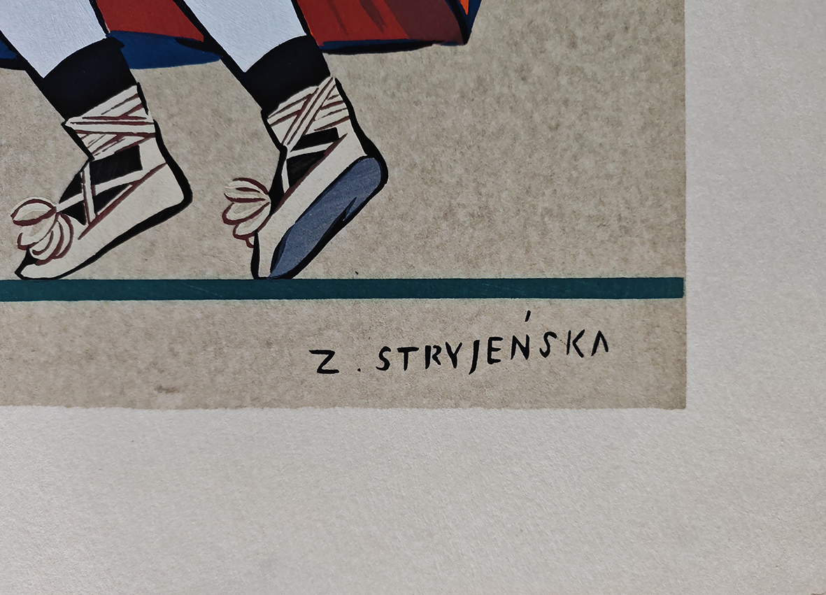 Praca pochodzi z teki: “Z. Stryjeńska, Polish Peasants’ Costumes. With introducion and notes by Thadee Seweryn, Curator of Ethnographical Museum in Cracow, Nice 1939.