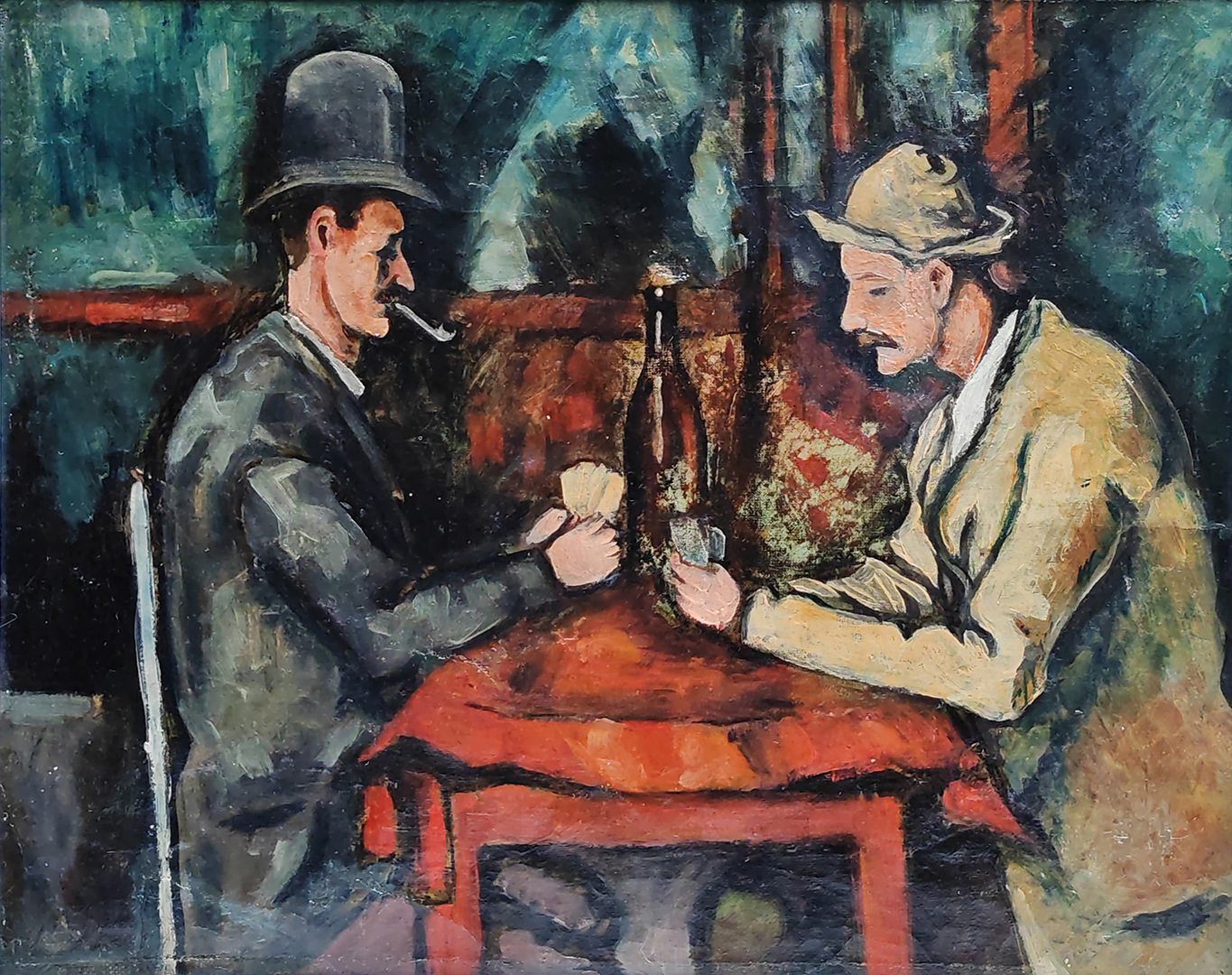 Paul Cézanne to francuski malarz, którego twórczość stanowiła pomost między XIX-wiecznym impresjonizmem, a nowoczesnymi kierunkami XX wieku. Nazywany „ojcem sztuki nowoczesnej”, odrzucił ulotność światła na rzecz poszukiwania trwałych struktur i geometrycznych form w naturze. Malował w sposób powolny i analityczny, budując kompozycje z rytmicznych pociągnięć pędzla. Jego cykl Grający w karty jest jednym z najważniejszych dokonań postimpresjonizmu, w którym autor zmonumentalizował codzienną scenę rodzajową.