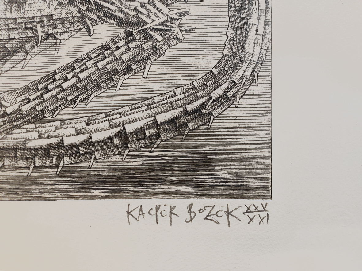 Kacper Bożek – urodzony w 1974 roku w Krakowie. Absolwent Państwowego Liceum Sztuk Plastycznych im. Antoniego Kenara w Zakopanem i Wydziału Grafiki Akademii Sztuk Pięknych w Krakowie. Dyplom zrealizował pod kierunkiem profesora Stanisława Wejmana. Pracuje jako adiunkt w Pracowni Miedziorytu macierzystej uczelni. W 2013 roku uzyskał tytuł doktora za cykl grafik poświęconych Rękopisowi znalezionemu w Saragossie i dziejom Jana Potockiego. Prezentował swoje prace na około 30 wystawach indywidualnych w Polsce i za granicą. Uczestniczył także w kilkudziesięciu wystawach zbiorowych, otrzymując wielokrotnie nagrody (lista poniżej). Zazwyczaj używa technik wklęsłodruku, szczególnie akwaforty i akwatinty. Jedną z jego inspiracji jest literatura. Wykonał dwie teki grafik w oparciu o „Mistrza i Małgorzatę” Michaiła Bułhakowa i „Pamiętnik znaleziony w Saragossie” Jana Potockiego.