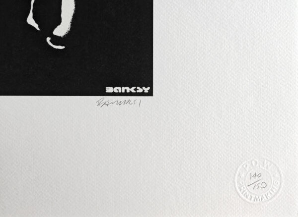 Napis ołówkiem l.d.: 140/150, p.d.: faksymile „Banksy”.