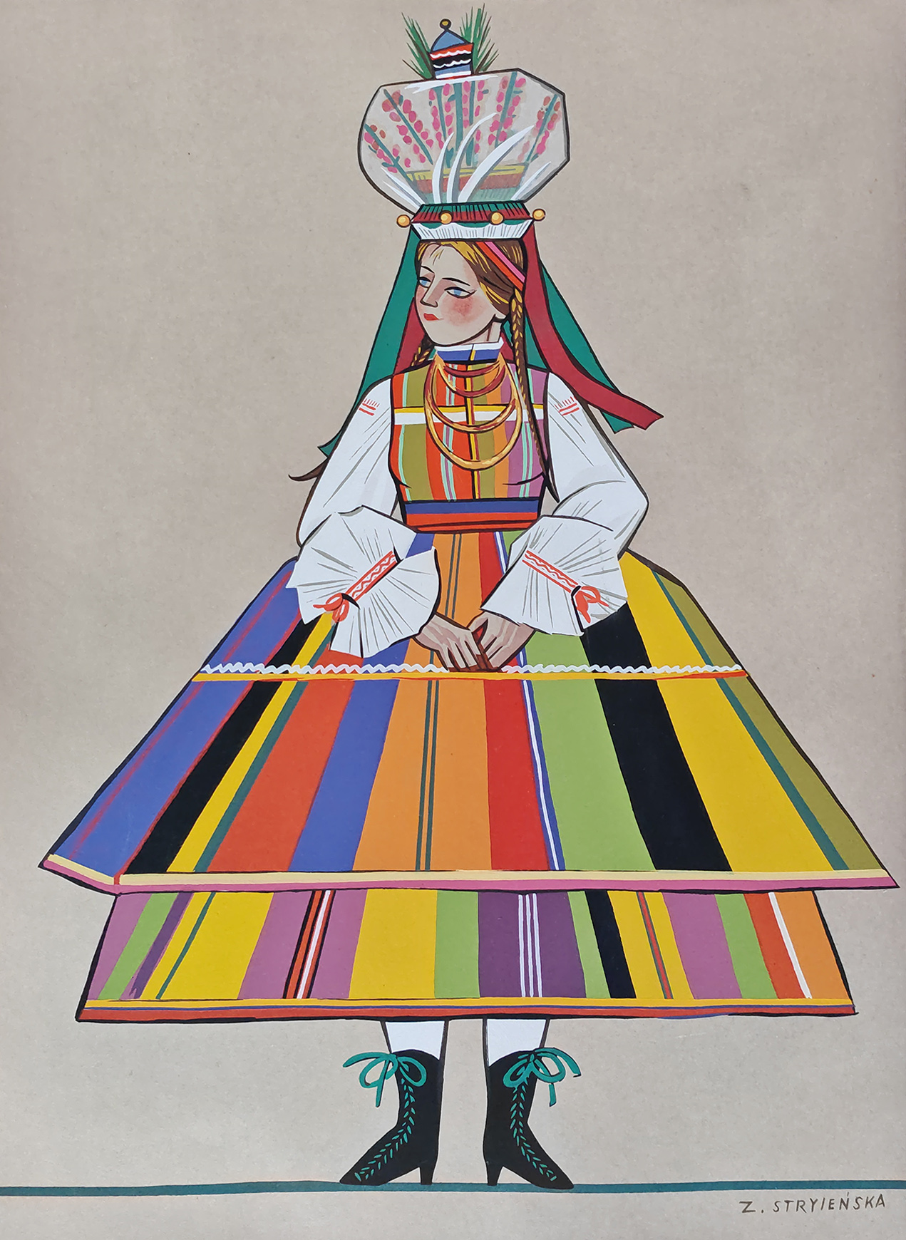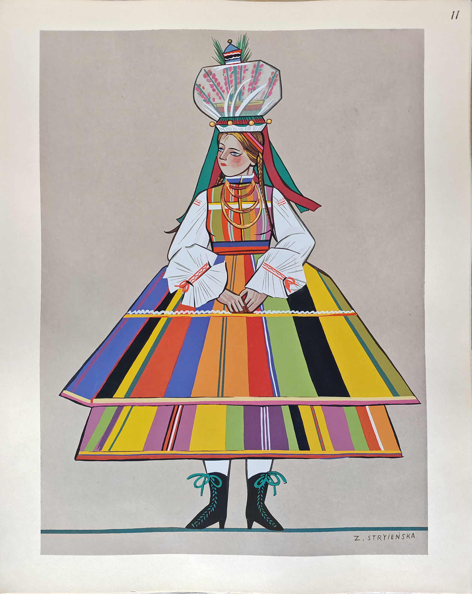 Praca pochodzi z teki: “Z. Stryjeńska, Polish Peasants’ Costumes. With introducion and notes by Thadee Seweryn, Curator of Ethnographical Museum in Cracow, Nice 1939.