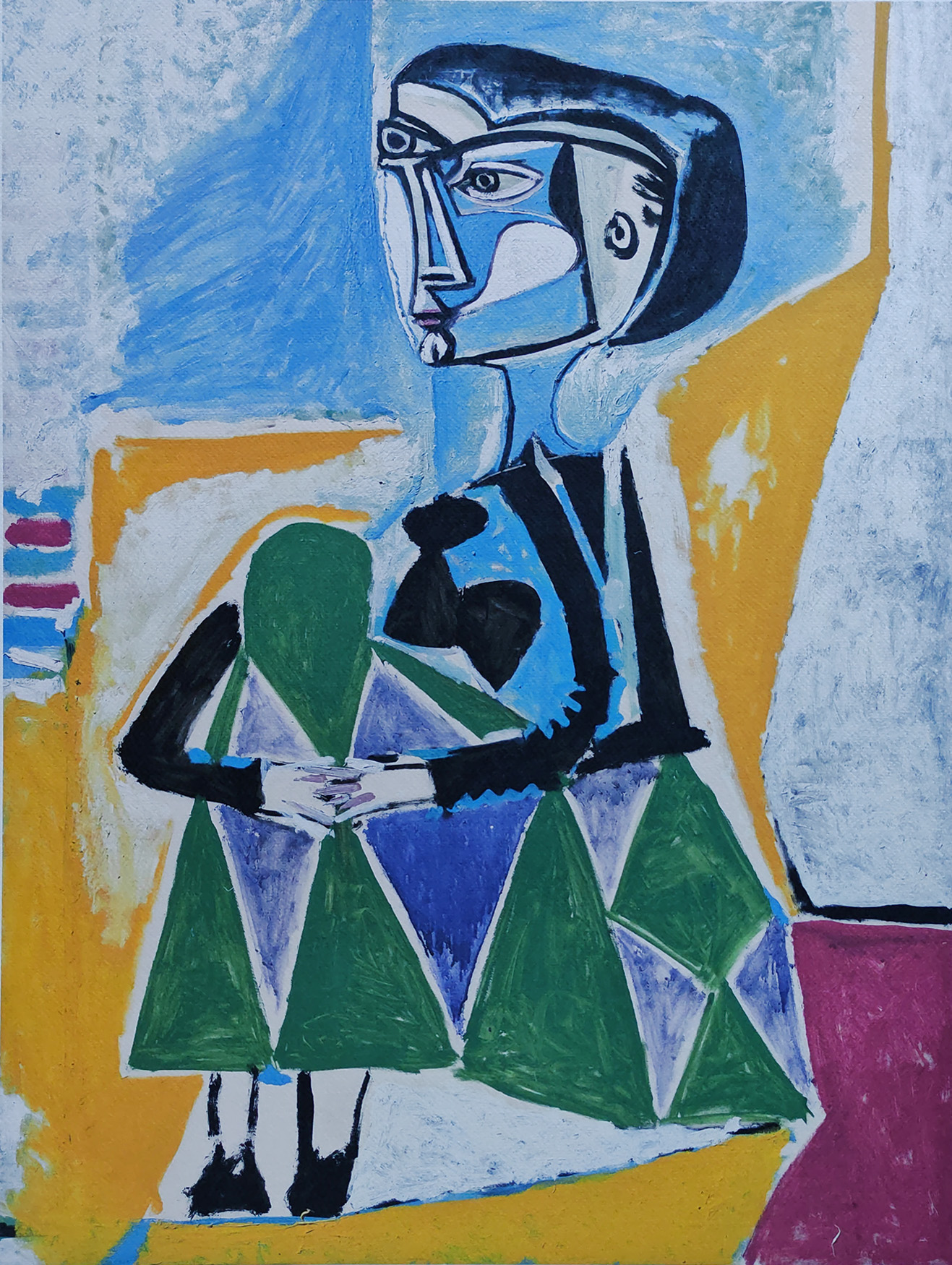 Pablo Picasso urodził się w Maladze w roku 1881. Jego ojciec był rysownikiem i to on dawał mu pierwsze warsztaty i odkrył w nim talent. W wieku lat czternastu Pablo wstąpił do Królewskiej Akademii Sztuk Pięknych św. Ferdynanda. Wkrótce również znalazł się w Paryżu zostając członkiem francuskieh bohemy artystycznej. Przebywał następnie we Włoszech podczas działań wojennych I wojny, natomiast lata trzydzieste m.in. spędził w Hiszpanii. Pierwszą połowę lat czterdziestych Picasso przeżył w Paryżu, by zostając komunistą tamże dożyć swych lat, pod Cannes, na południu Francji. Był twórcą takich niezapomnianych dzieł jak na przykład jego „Longchamp”, czyli ekspresja form w połączeniu z jaskrawą kolorystyką. Następny był okres błękitny Picassa, w którym błękit miał za zadanie oddawać uczucie współczucia, smutku czy wzruszenia. Wystarczy tu wspomnieć pewnie o jego dziele zatytułowanym „Wezwanie. Pogrzeb Casagemasa” z roku 1901, czy też obraz „Stary gitarzysta”, popełniony w roku 1903. Później przyszedł czas na jego okres różowy i choćby obraz „Rodzina arlekina”. Czas ten jednak również przeminął dla nowego – Picasso przeżywał świat niejako na nowo, a w związku z tym jego okres prekubistyczny, stąd dzieła takie jak „Portret Kahnweilera”, „Arlekin” z roku 1915. Nie był to bynajmniej koniec ewolucji. Przeżył bowiem nawrót klasycyzmu widoczny w dziele „Kobiety przy fontannie”. Wreszcie nastał jego surrealizm przedwojenny widoczny w „Tańcu” i „Czerwonym fotelu”. Obrazy z kolei takie jak ”Masakra w Korei” z roku 1951 czy „Wojna i pokój” pochodzą już z okresu powojennego. Niektórzy dopatrują się w jego twórczości wówczas nawet manieryzmu. Zwróćmy uwagę na reinterpretacje dzieła Velaswueza „Las meninas” oraz słynne dzieło „Śniadanie w trawie”. Tymczasem Picasso oprócz tego angażował się w wyrabianie ceramiki artystycznej, czym oznaczył swój ostatni okres twórczy. Zmarł 8 kwietnia 1973 roku w Mougins. W ciągu swojego życia Pablo Picasso był w siedmiu dłuższych związkach. Miał czwórkę dzieci: Paul (z Olgą Kokhlovą, pierwszą żoną), Maya (z Marią Teresą Walter), Claude i Paloma (z Francoise Gilot, drugą żoną). (źródło: www.zyciorysy.info)